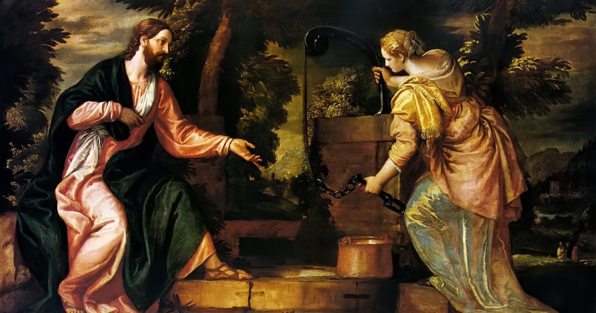 时值第六时辰,也就是正午,耶稣和门徒们来到水泉旁,由于行路疲累,耶稣便在水泉旁坐下休息。在耶稣的时代,水泉是重要的社交场所,人们喜欢在此相聚谈天说地。